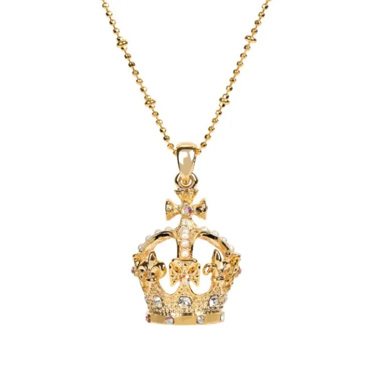 Add A Touch Of Style To Your Attire With This Golden Crown Pendant Necklace. Inspired By The St. Edward’S Crown Which Was Last Used For The Crowning Of King Charles Iii In 2023, This Pendant Is Adorned With Dainty Costume Pearls And Sparkling Crystals For An Elegant Finish.