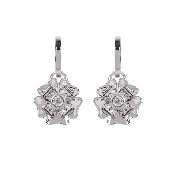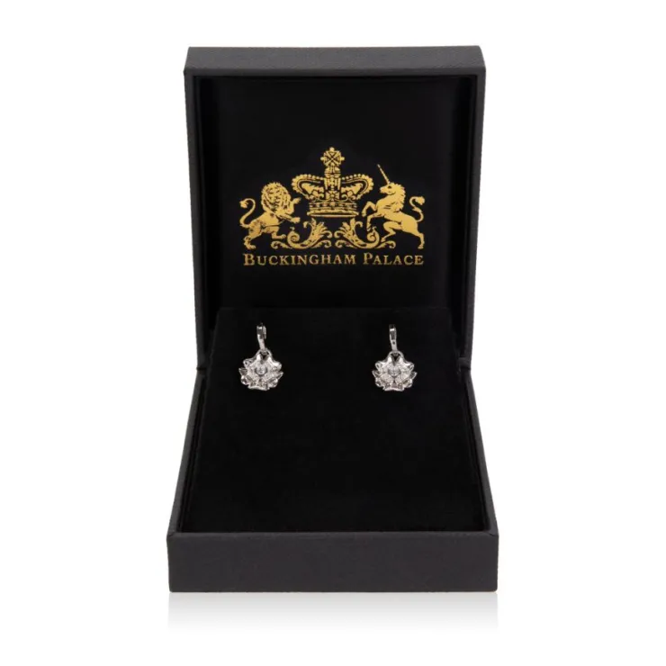 Representing The Beautiful Country, England, This Elegant, Sterling Silver Pair Of Earrings Feature Delicate Roses. With Layers Of Petals For A Detailed Effect, Each Rose Features A Sparkling Cubic Zirconia At The Centre. To Mark The Magnificent Celebrations Of His Majesty King Charles Iii’S Coronation, This Exquisite Piece Of Jewellery Has Been Stamped With The Coronation Hallmark, 2023 Making It Truly Unique.
