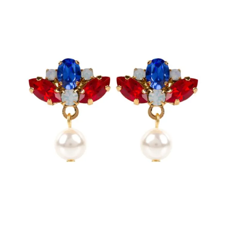 These Statement Earrings Are Made Of Gold Plated Brass, Sparkling Crystal And Bright Pearls.