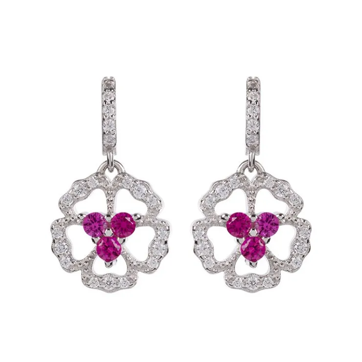 Set With Cubic Zirconia Crystals And Synthetic Rubies, These Earrings Are Hallmarked Sterling Silver.